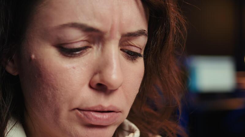 Upset teleworking engineer worried after failing to secure company servers from virus attacks, close up. Anxious woman stressed about being unable to build firewalls protecting data, camera B Pro Video