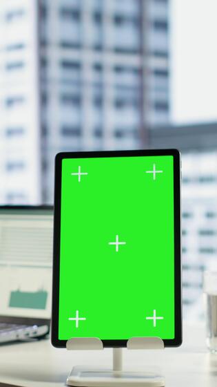 Vertical Young business manager working with isolated copy space on her tablet, working on financial planning with data analytics on laptop. Developing a strategy to increase funding for success. Camera B. Pro Video