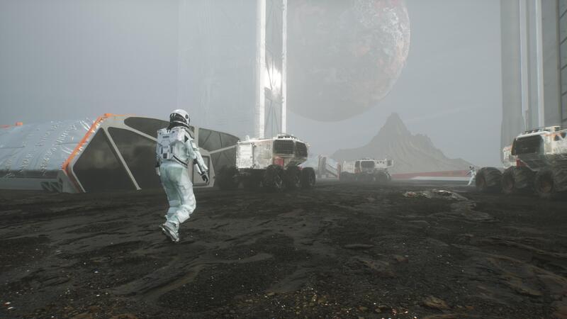 Astronaut Walks on the Surface of a Planet with a view of Space Colonization Free Video