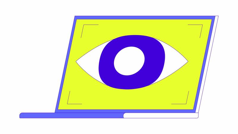 Laptop eye tracking 2D object animation. Digital authorization. Identification technology cartoon 4K , alpha channel. Monitoring surveillance notebook animated flat item on white background Pro Video