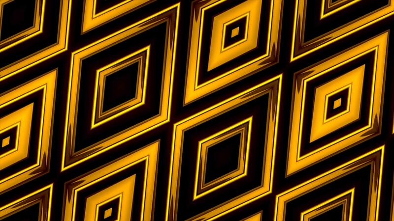 Kaleidoscopic shapes of golden color, seamless loop. Motion. Rhombus colorful fractal pattern on a black background. Pro Video
