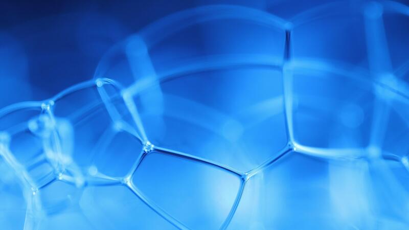 Blue bubbles in macro, connection of bubbles in macro, cell from liquid, molecules connection Pro Video