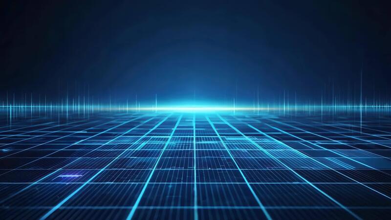 Abstract digital landscape with glowing grid layers, representing technology and innovation in a futuristic setting. Free Video