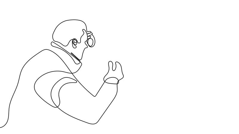 Simple, single-line sketch of an architect and construction crew reviewing plans together at the building site. Pro Video