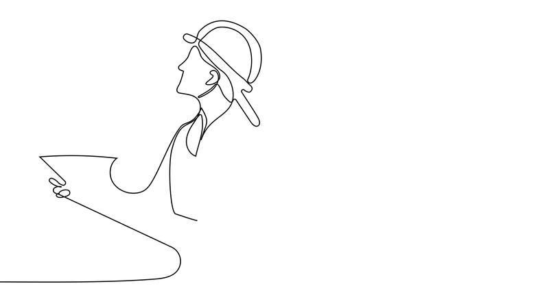 Continuous line animation of architects and builders going over blueprint designs at a construction site. Pro Video