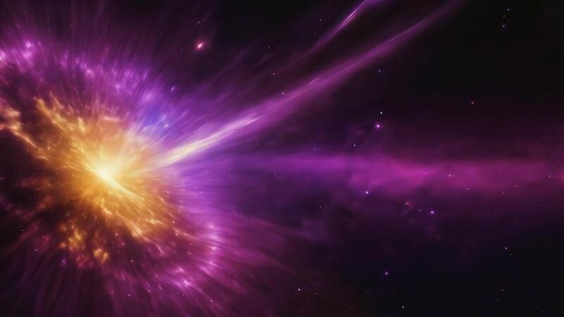 Cosmic waves flow across this abstract space background, illuminated by a transdimensional aura that creates a vibrant and dynamic scene, reflecting the infinite possibilities of the universe. Pro Video