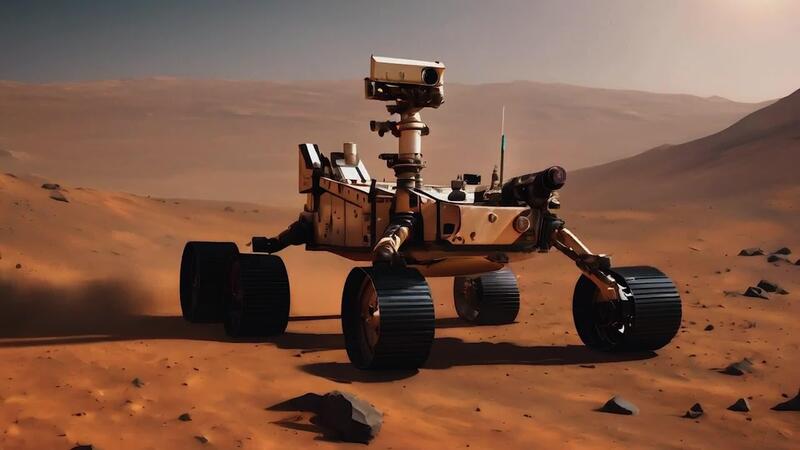 Robotic vehicles backing up new planets and exploring alien life in a futuristic space adventure, highlighting advanced technology and cosmic discovery with detailed sci-fi and digital art elements. Pro Video