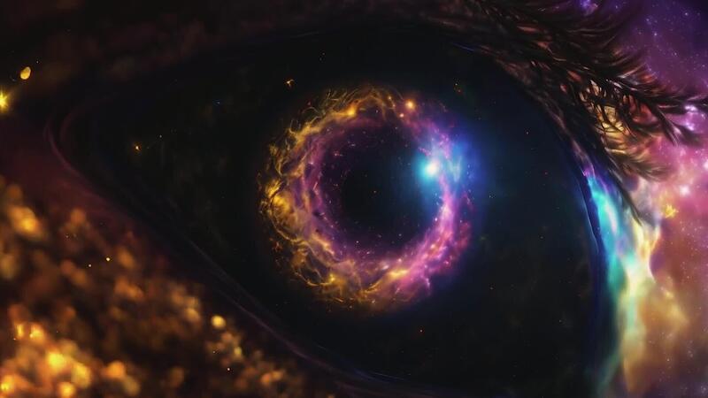 Interdimensional aura light flows across this abstract space scene, where radiant energy waves and cosmic textures combine to create a vibrant and futuristic space atmosphere. Pro Video