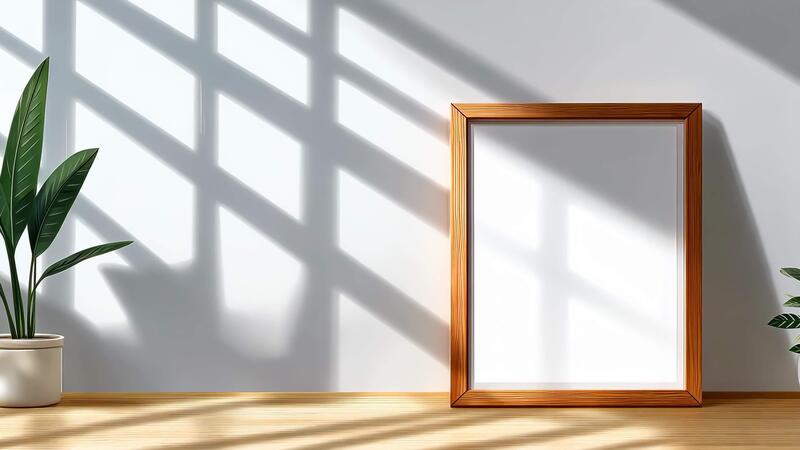 A simple empty frame on a bright wall catches soft light, creating playful shadows in this modern cartoonstyle illustration. Pro Video