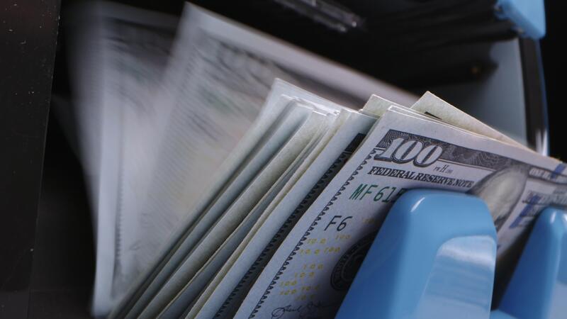 A close-up view of a currency counter, showing the rollers and sensors used to count money Pro Video