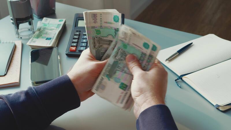 Counting cash at a desk with a calculator, notepad, and smartphone in a tidy office setting Pro Video