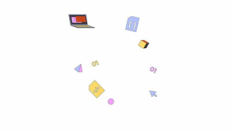 Software development elements 2D objects animation. Computing technology future cartoon 4K , alpha channel. Laptop and bouncing code details animated flat items on white background Pro Video