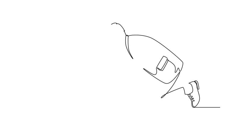 Animated self drawing of continuous line draw side view of urban office worker get ready to sprint run on running track. Business race challenge competition concept. Full length single line animation Pro Video