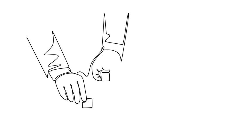 Animated self drawing of continuous line draw of business team member arrange wooden cube block become strong tower, together to improve team building. Teamwork concept. Full length one line animation Pro Video