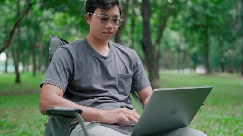 Serious and committed programmers are looking for inspiration in their decision-making. feeling lost thinking Stressed out from work Sitting in the park. Working online. Worried. Working in the park. Free Video