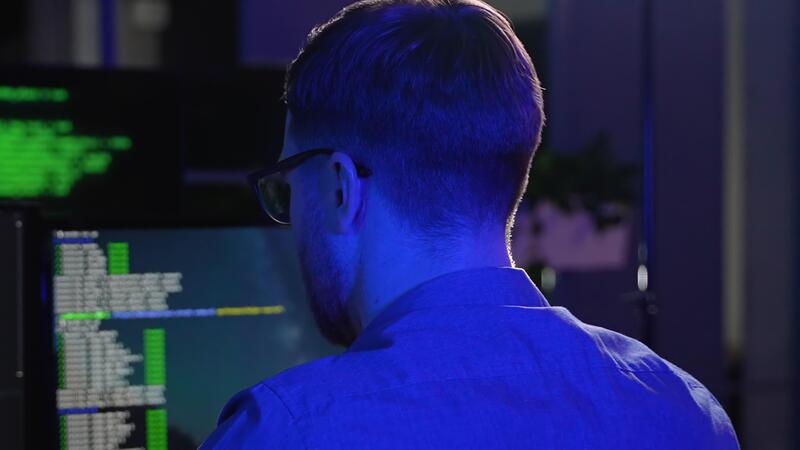 Programmer Typing Data Code, Working On Project In Software Development Company Pro Video