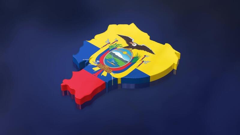 3D map of Ecuador moving on a blue textured floor. The country's area features the Ecuador flag texture with a luma matte effect. 3d rendering Free Video