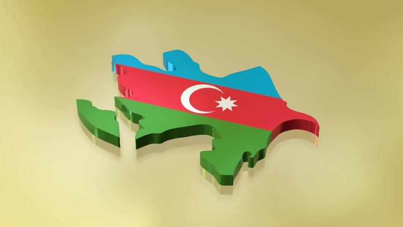 A 3D rotating map of Azerbaijan on a yellow background. The country's borders are illustrated with the Azerbaijan flag texture, using a luma matte effect Free Video