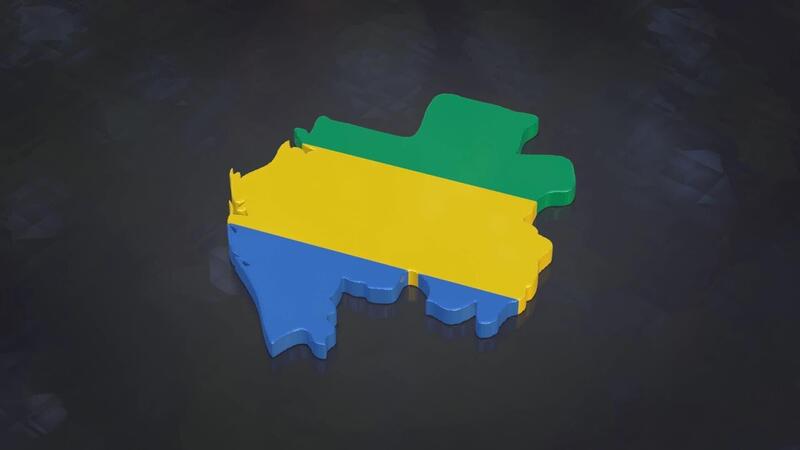 3D map of Gabon moving on a gray textured floor. The country's area features the Gabon flag texture with a luma matte effect. 3d rendering Free Video