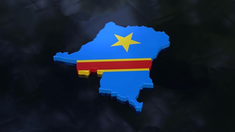 3D map of Democratic Republic of the Congo moving on a black textured floor. The country's area features the flag texture with a luma matte effect. 3d rendering Free Video