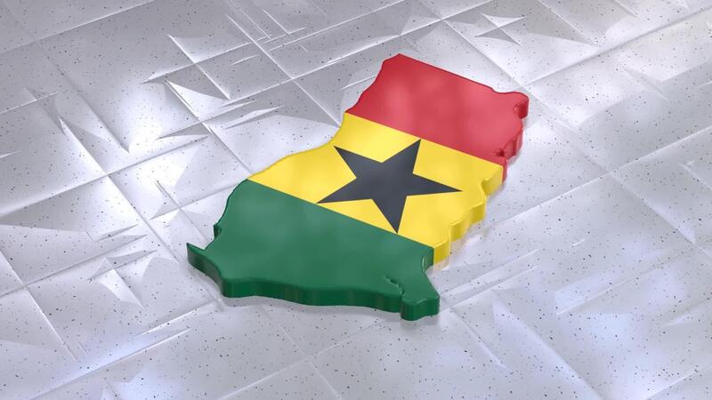 3D map of Ghana moving on a white textured floor. The country's area features the Ghana flag texture with a luma matte effect. 3d rendering Free Video