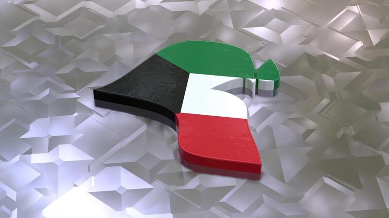 3D map of Kuwait moving on a white glossy textured floor. The country's area features the Kuwait flag texture with a luma matte effect. 3d rendering Free Video