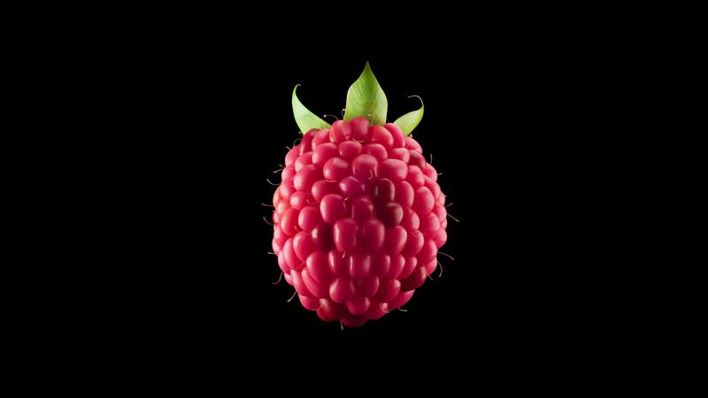 3D animation of a raspberry rotating around its axis. Raspberry slowly rotates 360 degrees. File contains Alpha Channel. Pro Video
