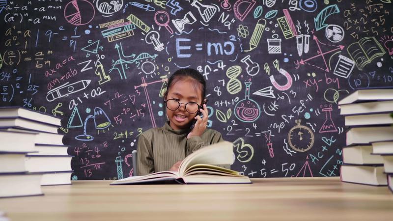 Front view of lazy Asian girl pretending to read book and using phone calling friend in working room at home, Not concentrate on reading. Studying online concept Free Video