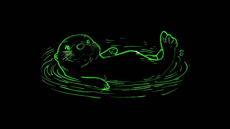 Neon frame effect, otter floating on its back with a playful expression on black background Free Video