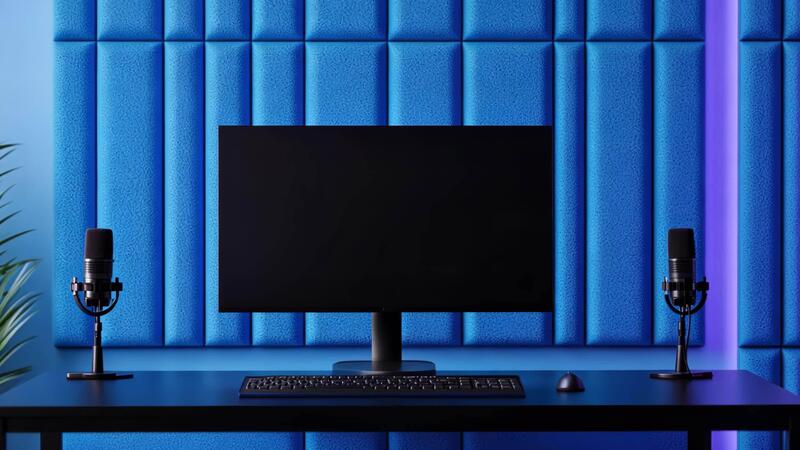 Modern podcast recording setup with dual microphones and computer, ideal for content creation and remote work themes Free Video