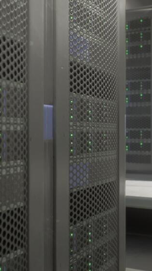 Shot of Corridor in Working Data Center Full of Rack Servers and Supercomputers Pro Video