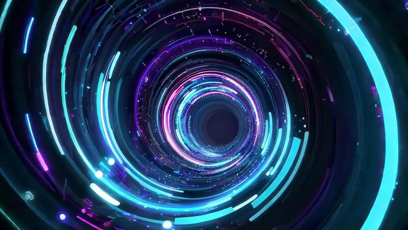 Abstract visualization of vibrant neon lights spiraling in a circular motion, creating a dynamic and futuristic atmosphere. Free Video