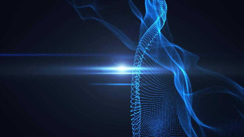 Abstract glowing wave of particles and dots moving on blue background with optical light, big data visualization, futuristic and digital background, 3D, 4K, seamless loop Pro Video