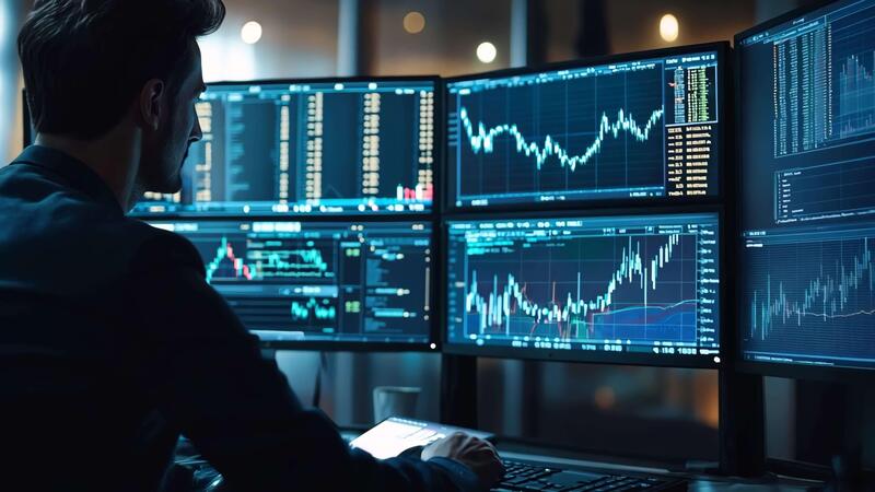 A man sitting at a desk in front of multiple computer monitors Pro Video