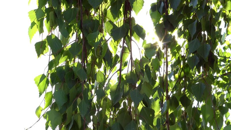 Sun Rays Breaking Through Green Foliage and Branches of Trees in the Forest on a Summer Day. Static Racking Focus Shot Pro Video