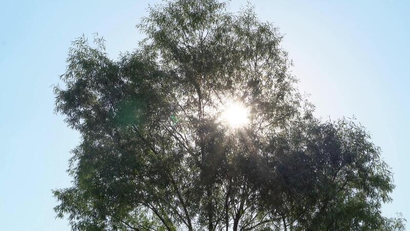 Sun Rays Breaking Through Green Foliage and Branches of Trees in the Forest on a Summer Day. Static Racking Focus Shot Pro Video