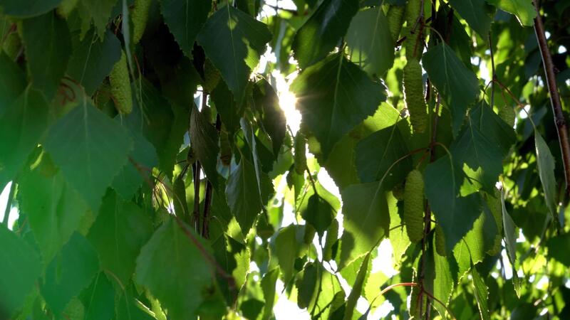 Sun Rays Breaking Through Green Foliage and Branches of Trees in the Forest on a Summer Day. Static Racking Focus Shot Pro Video