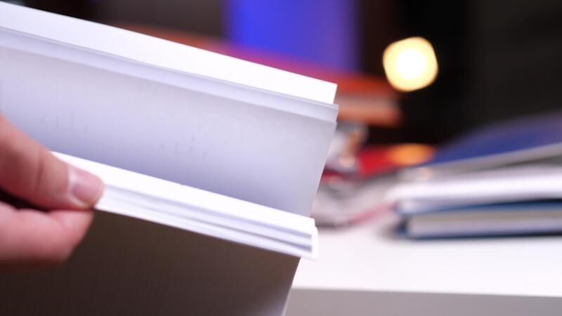leafing through a stack of documents. Finding the required document Pro Video