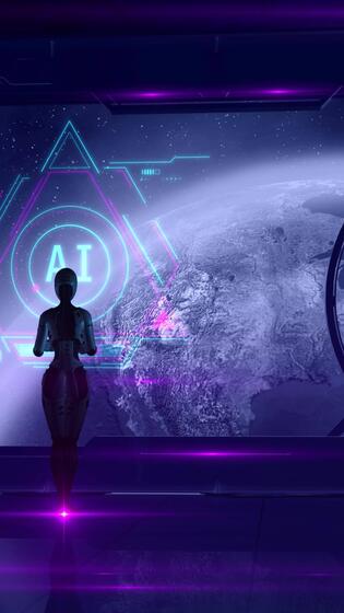 A sci-fi plot of the use of artificial intelligence in space flights. 3D render Pro Video