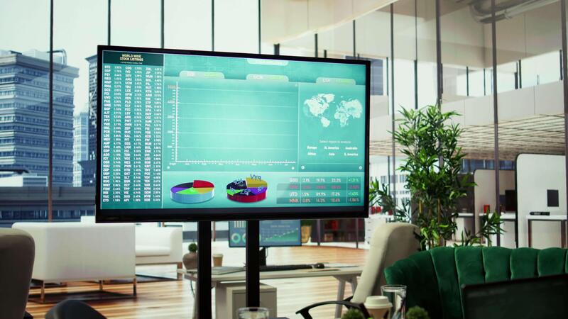 Empty modern office setup with advanced technology enhances productivity, helping professionals focus on financial strategies, performance metrics and global business objectives. Pro Video