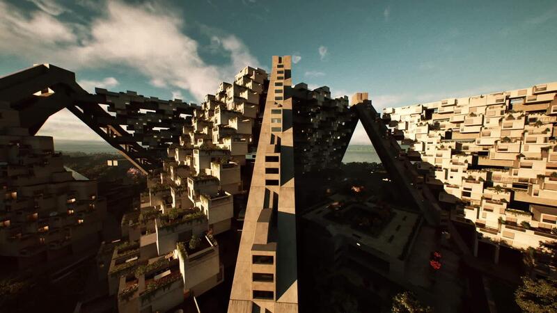 Modern architectural design features unique structures in a vibrant setting Pro Video