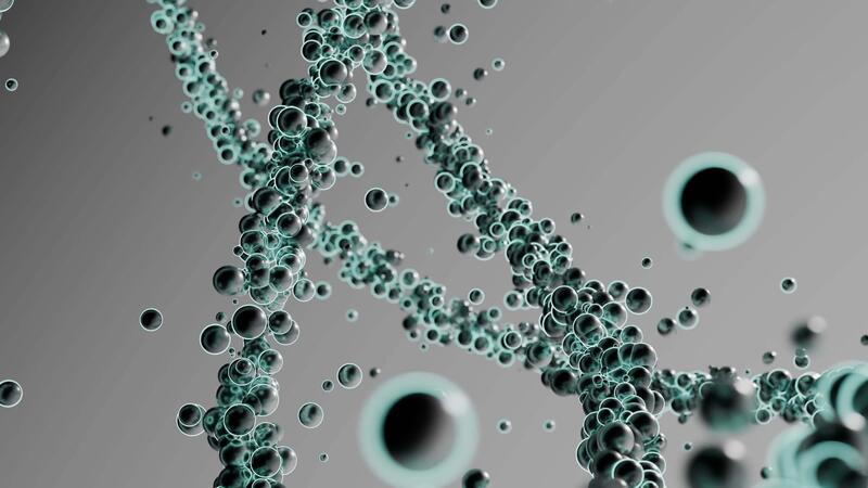Futuristic seamless loop background in science fiction style with long 3D structures made of glowing spheres. Abstract bubble substance in a shape of tentacles moving in zero gravity. Looped 4K 60fps Pro Video