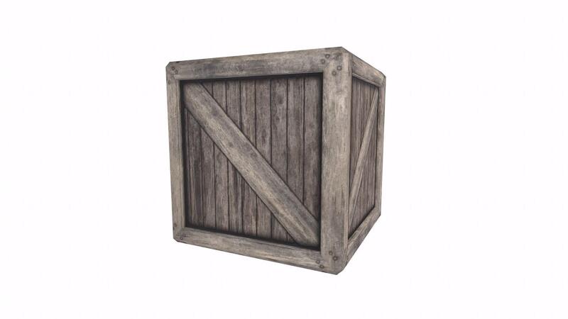 Realistic 3D rendering of a weathered wooden crate in a rustic setting Free Video