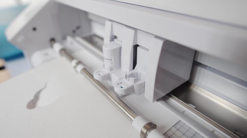 CNC machine cuts different shapes on white paper. Cutting cardboard on a cutting machine. Cutting plotter in process. Pro Video