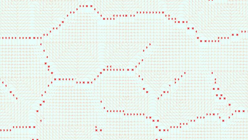 Spinning retro surface with tiny shimmering squares. Design. Rotating bended red lines of pixels on a beige background. Pro Video