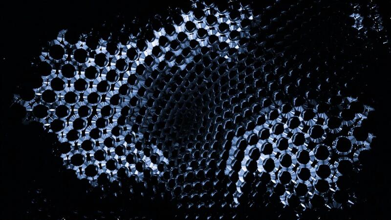 Abstract fabric of particles waving on a black background. Design. Game of light and shadow and a shape of a flower. Pro Video