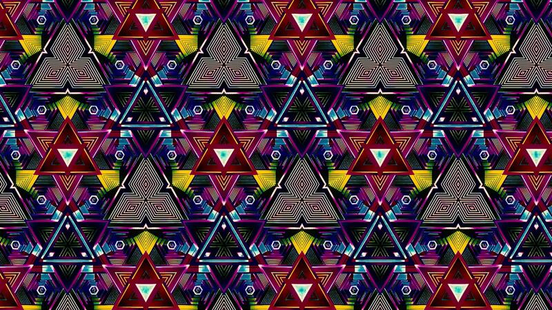 Bright psychedelic pattern with flashing figures. Motion. Pattern with flashing geometric shapes and psychedelic colors. Flashing kaleidoscopic figures with psychedelic effect Pro Video