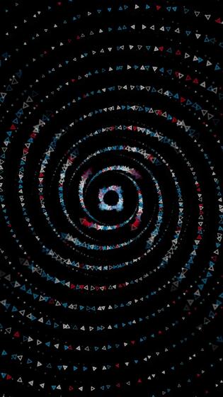 Abstract small triangles moving on a spiral trajectory and flying towards the camera, amazing 3D effect. Animation. Spinning geometric figures on black background. Pro Video