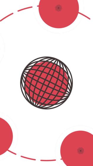 Abstract globe with rotating round objects around. Media. Cartoon animation with red spherical objects. Vertical . Pro Video