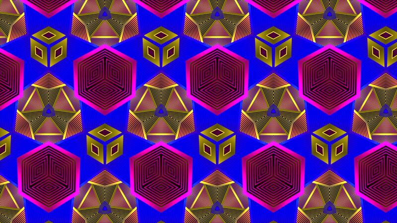 Bright flashing pattern of geometric shapes. Motion. Acid flashing pattern with repeating geometric shapes. Neon psychedelic figures blink in bright animated background Pro Video